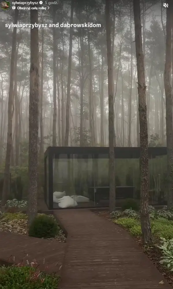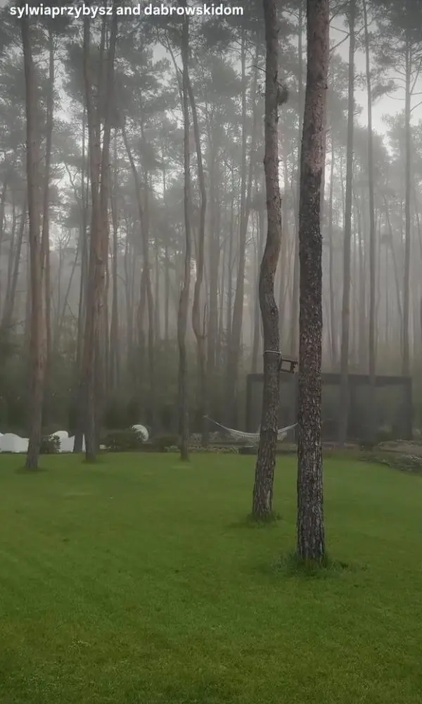 Na nagraniu widać imponującą przeszkloną pergolę, w której rodzina spędza czas niezależnie od pogody. Obok niej znajdują się drewniane alejki prowadzące w stronę placu zabaw z zjeżdżalnią dla dzieci, a całość otacza gęsty las, który dodaje miejscu wyjątkowej atmosfery prywatności i spokoju. Mgła, która w dniu nagrania unosiła się nad trawnikiem, nadała całości niemal filmowego klimatu. Nic więc dziwnego, że fani w komentarzach porównują ogród Sylwii Przybysz do scenografii z romantycznych produkcji Netflixa.