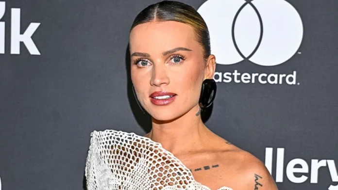 Influencerka wybrała monochromatyczny, biały zestaw. Wskoczyła w luźne, satynowe spodnie, które nadały stylizacji lekkości. Do tego dobrała bogato zdobioną górę, czyli haftowany gorset. To właśnie on stał się głównym punktem całej kreacji.