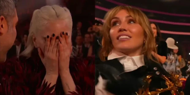 Lady Gaga odebrała Grammy, a kamery natychmiast skierowano na Miley Cyrus. Co tam się stało? (WIDEO)